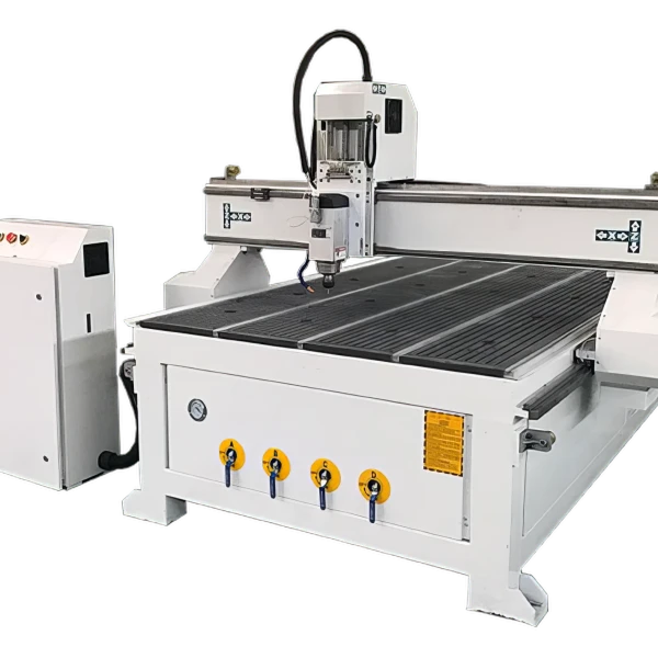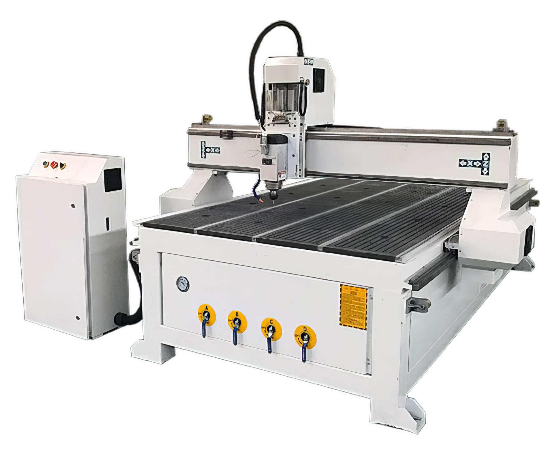Секционна вакуум маса предназначена да държи стабилно детайлите за постигане на максимална точност при рязане. Предотвратява мърдане на материала, пести време и консумативи за закрепяне. Гумени уплътнения на всяка зона за максимална ефективност на вакума. За "трудните" материали сме оставили и Т-канали, така може да ползвате стяги за закрепяне (в комплект с машината)