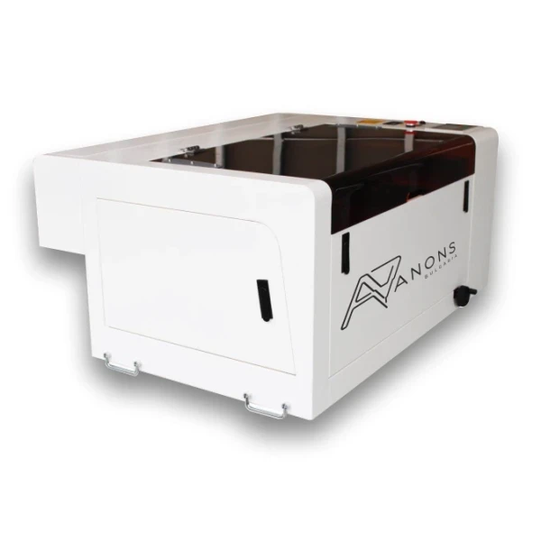 Получавате напълно оборудвано и работещо решение. Лазерът се продава със удобна стойка, на която да бъде поставен. В него има място, за да съберете чилъра (CW300), компресора за обдухване и аспирацията. Всички те са стандартно включени в окомплектовката на машината.
