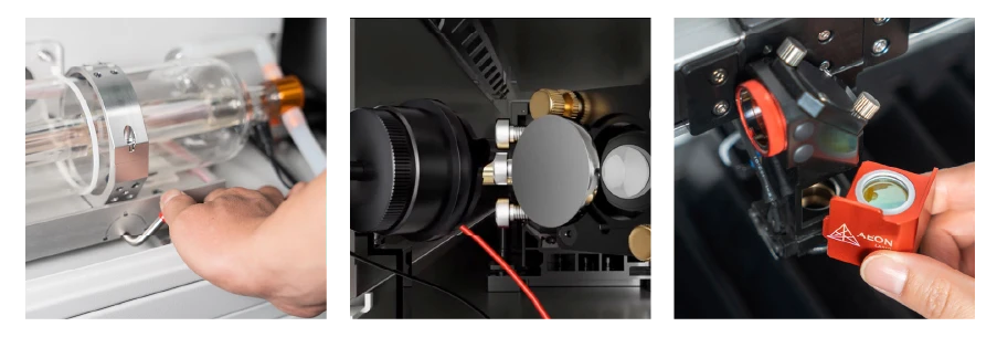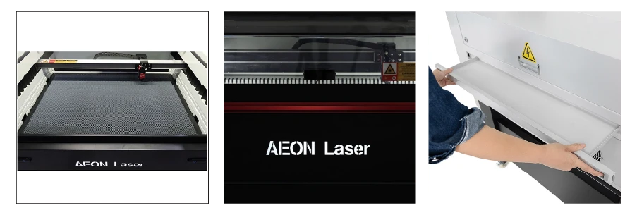 Aeon е известен със своя стилен и елегантен външен вид. Логото на Aeon Laser на панела на предния капак вече е осветено и е с двойна функция и като лампа за състоянието, светейки бяло, когато е в режим на готовност, червено, когато възникне грешка, и зелено, докато машината работи, добавяйки както стил, така и функция към вече зашеметяващия дизайн.