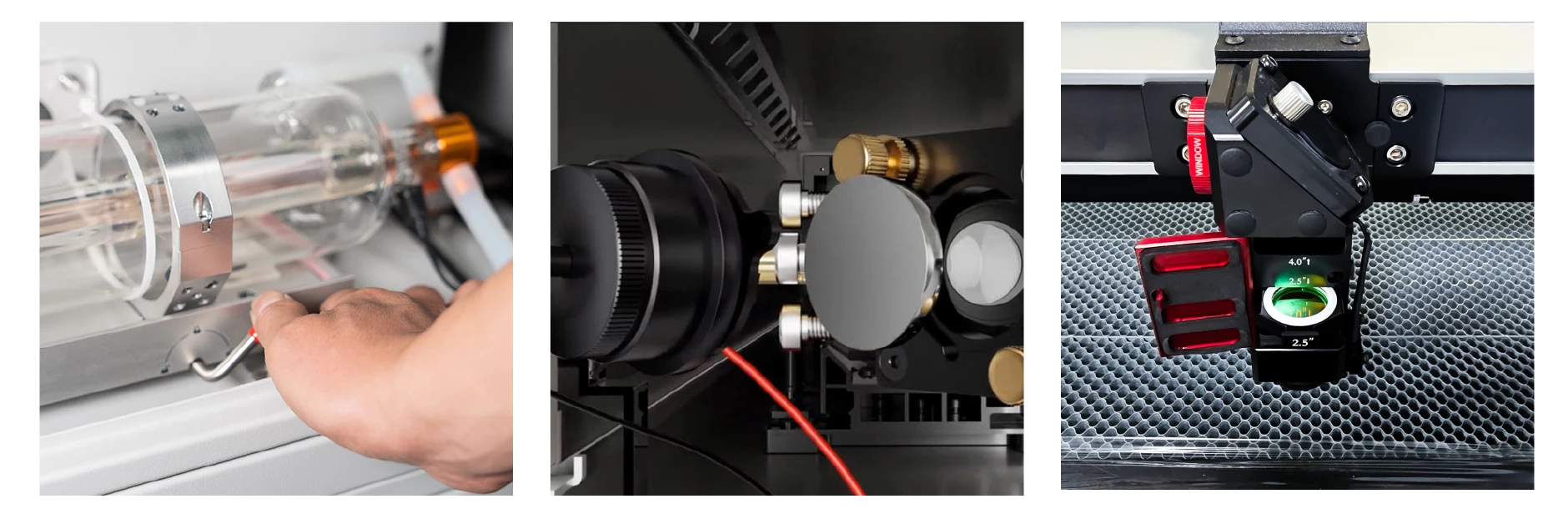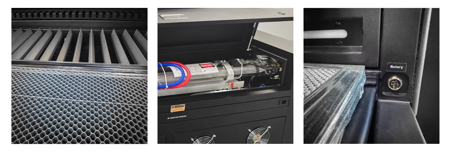Лазерът е оборудван със стъклена тръба - 100W, 130W или 150W, осигуряваща бързо и прецизно рязане дори на по-дебели материали.