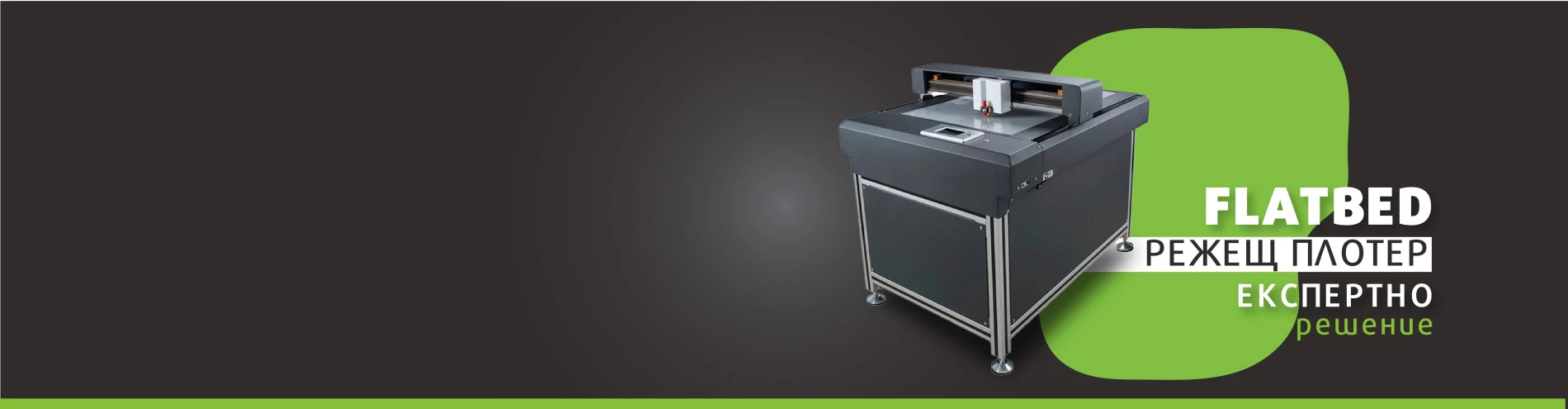 Мултифункционален режещ плотер с плоска маса (изработка на артикули с частично и пълно прорязване, биговане, рязане по контур, чертане.) С голям сензорен екран (Touchscreen) за лесна работа. Многоезична поддръжка, която е подходяща за всеки регион и всеки език. Двойни независими глави за различни и функции. Вакуум работна маса за задържане на медиите