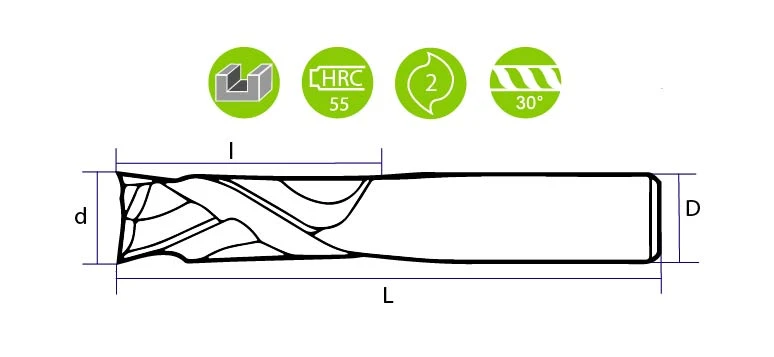 Специфичният дизайн позволява гладко рязане без накъртване, както на лицето, така и на гърба на материла. Долната част вади стружката нагоре, а горната - надолу. По този начин се предотвратява накъртването на ламината.