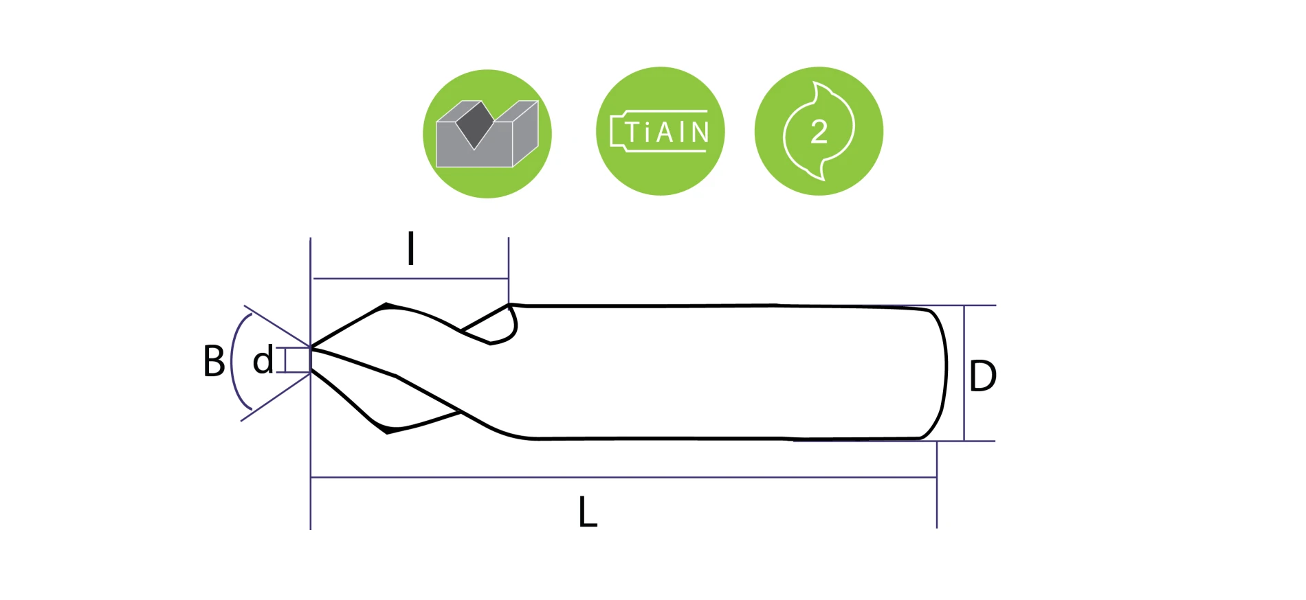 Проектиран за фрезовани канали на алуминиеви композитни (сандвич, ACM) материали като Italbond®, Alucobond® и Dibond® с V-образни форма. Върха му е 2mm, плосък. За по-голяма издържливост е използвано специално TiAlN покритие (Titanium-aluminium-nitride coating) с дебелина 4μm, коефициент на триене 0,5 μ и нано твърдост 35 Gigapascal (GPa). Покритието предлага висока устойчивост на топлина и окисление (800 °C). Това позволява работа с по-висока скорост на рязане и по този начин ускоряване на работните процеси. В сравнение с непокритите инструменти, TiAlN покритието, в зависимост от приложението, увеличава до десет пъти по-дълъг експлоатационен живот.