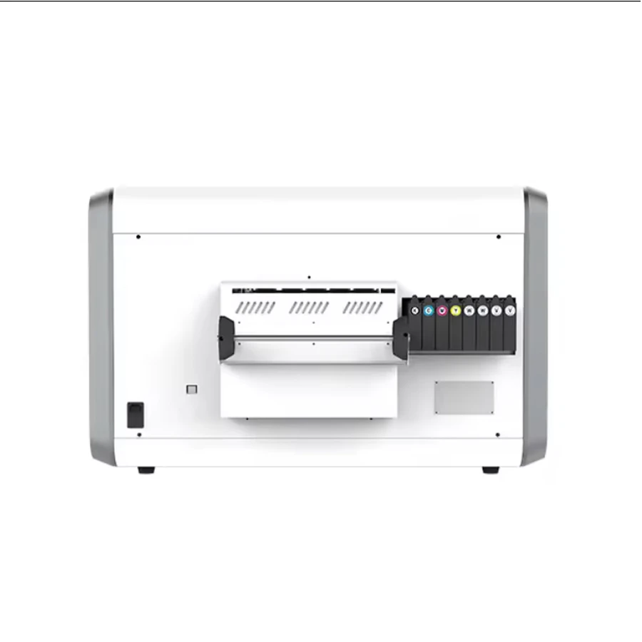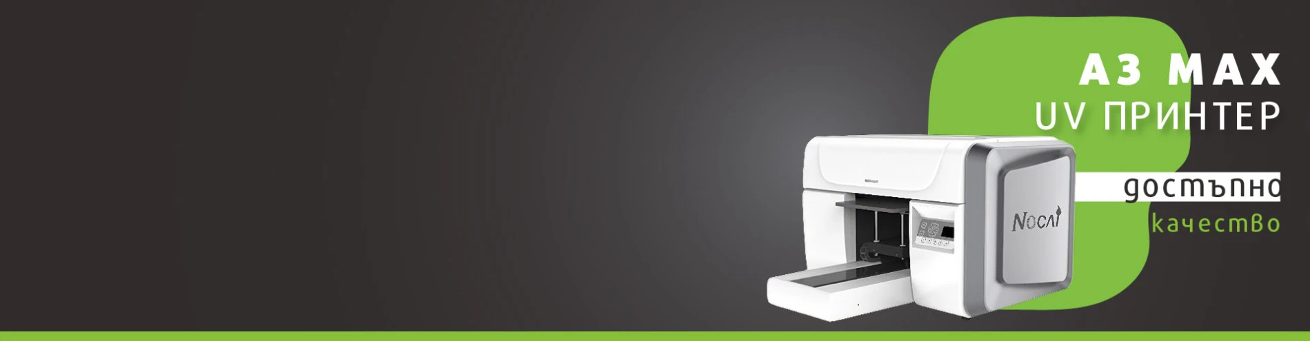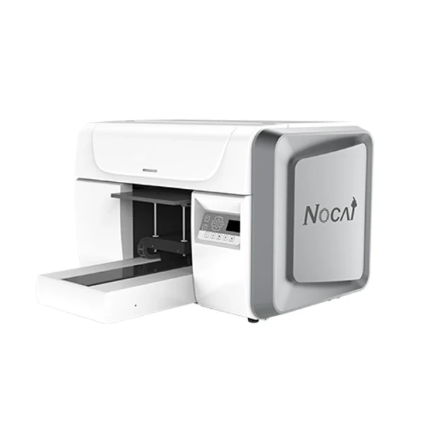 UV LED принтер Nocai UV A3 MAX за директен печат върху плексиглас, дърво, метал, стъкло, кожа, хартия, фаянс и др. Компактният му дизайн прави възможна инсталацията дори и в малки помещения като работилници за печат на кейсове за телефони, фотостудиа, работилници за сувенири и др. Възможност за печат на плоскости и предмети с дебелина до 85 mm.
