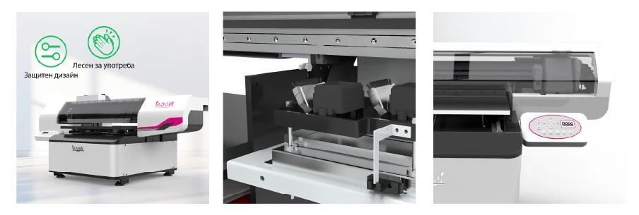 | Мода и дизайн | Печат върху нетъкан текстил, чанти, обувки, портмонета, колани и други аксесоари от естествени и изкуствени кожи, корк. |