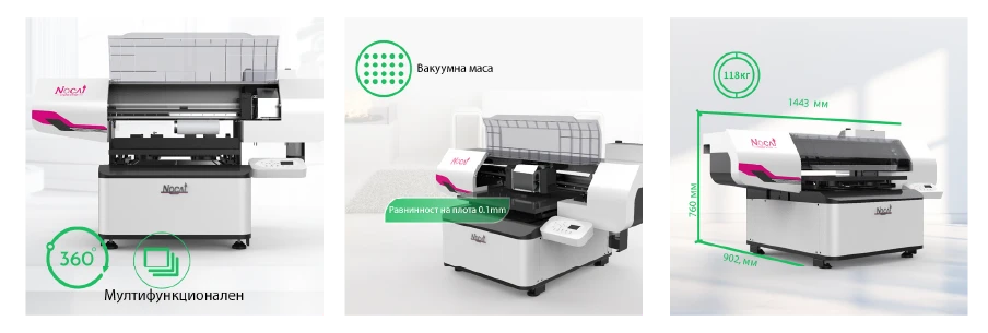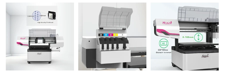 NC-UV0406 е първият UV мастиленоструен принтер с независима платка и формат за печат 60*40 см. Малкият дигитален мастиленоструен UV принтер Nocai е преработен до шесто поколение. Характеризира се със стабилност, компактност, спестяване на място и разнообразни сфери на приложение. Той е много подходящ за персонализиране на рекламни сувенири, кейсове за мобилни телефони, магазини за сувенири, фото студиа и други.