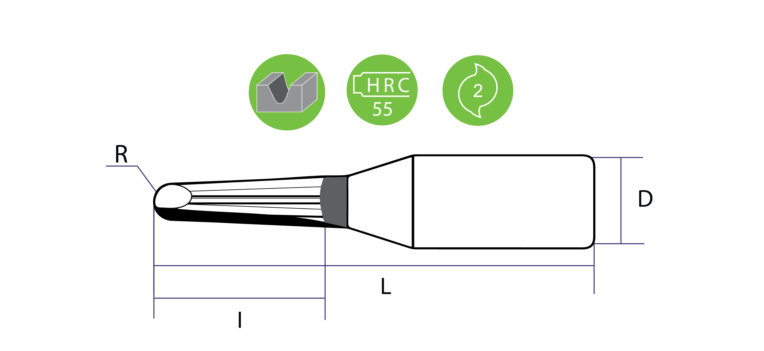 Фрезeр с два режещи ръба и заоблен връх за декоративни канали и извивки
