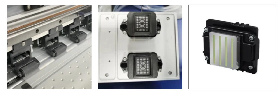 Снабден с 2 броя 4-канална индустриална печатаща глава Epson I1600, позволяваща печат с висока резолюция и фото качество, цветната система за печат е - CMYK + Бяло. Машината се доставя с лицензиран RIP софтуер FLEXI RIP. Печата едновременно бяло, цвят. Възможност за печат на растерен бял цвят. Шейкърът към автоматизира процеса на посипване и топене на пудрата, като гарантира равномерно покритие и стабилен трансфер