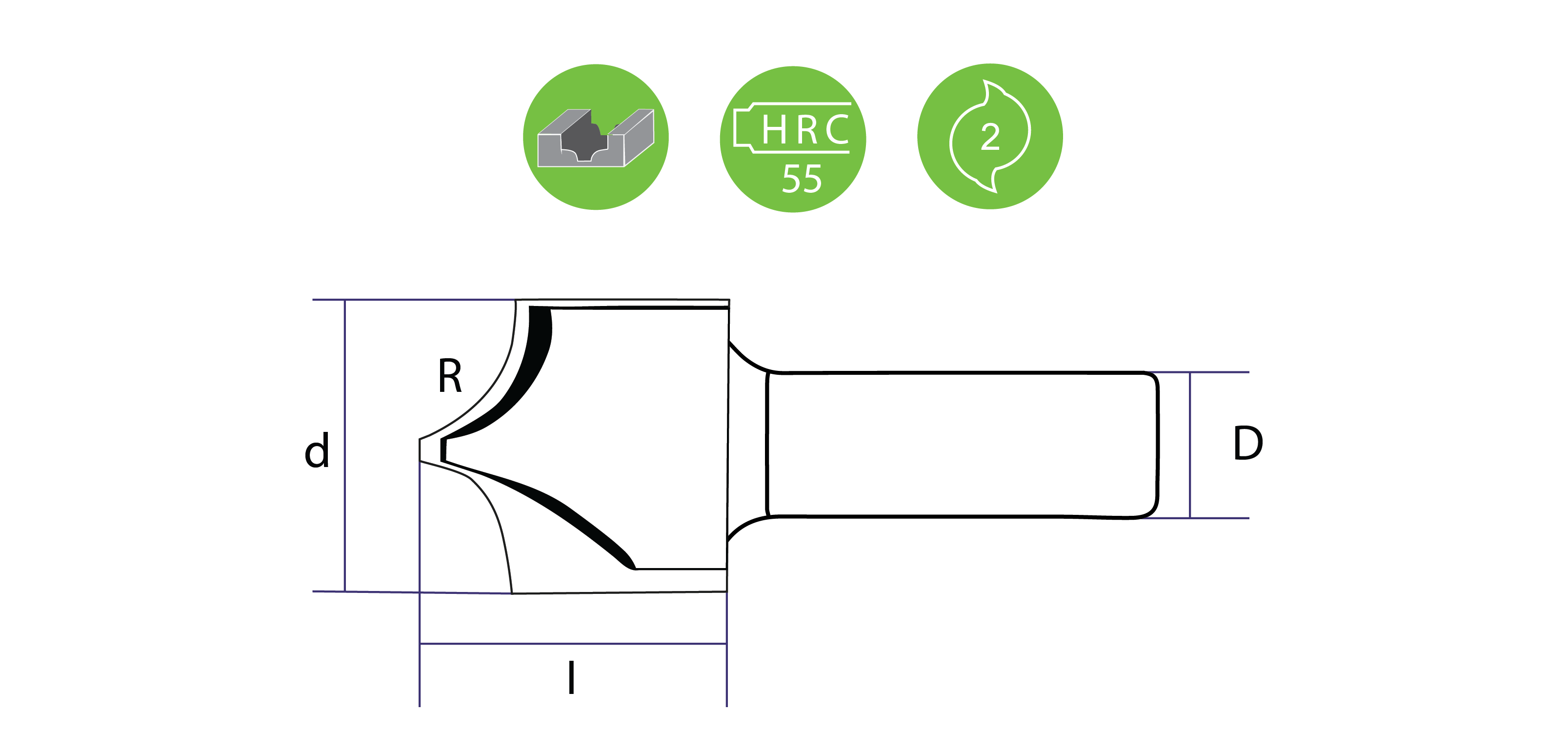 ⟩ Профилен фрезер Arden с 2 режещи ръба за заобляне